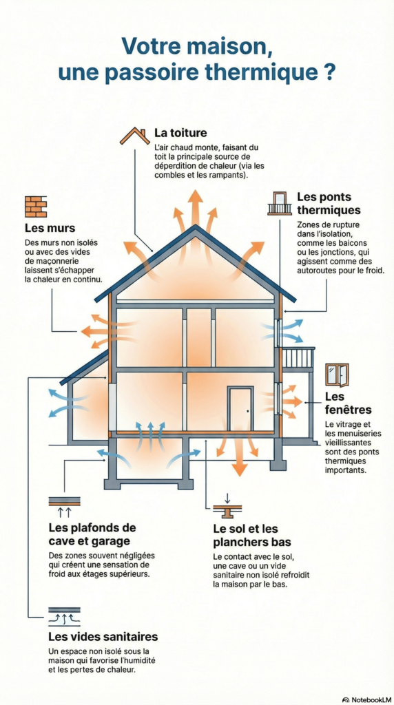 En Suisse, où le climat hivernal peut être rigoureux, la performance énergétique de votre logement n’est pas seulement une question d’écologie, mais un pilier de votre confort quotidien et de la maîtrise de votre budget. Une enveloppe de bâtiment défaillante agit comme une passoire thermique : elle laisse s’échapper la chaleur que vous payez cher, tout en laissant entrer le froid et l’humidité. Réduire les pertes de chaleur est essentiel pour diminuer les besoins en chauffage et les factures associées.